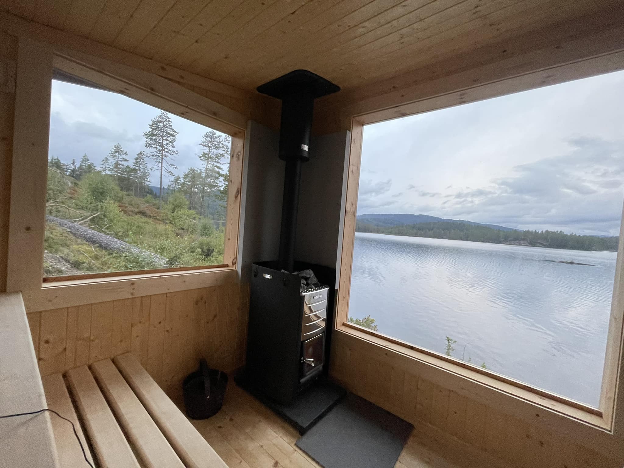 Badstoga er vedfyrt som du sjøl må syte for å fyra opp. De treng ikkje regna med oppfyringstid når de bookar.
